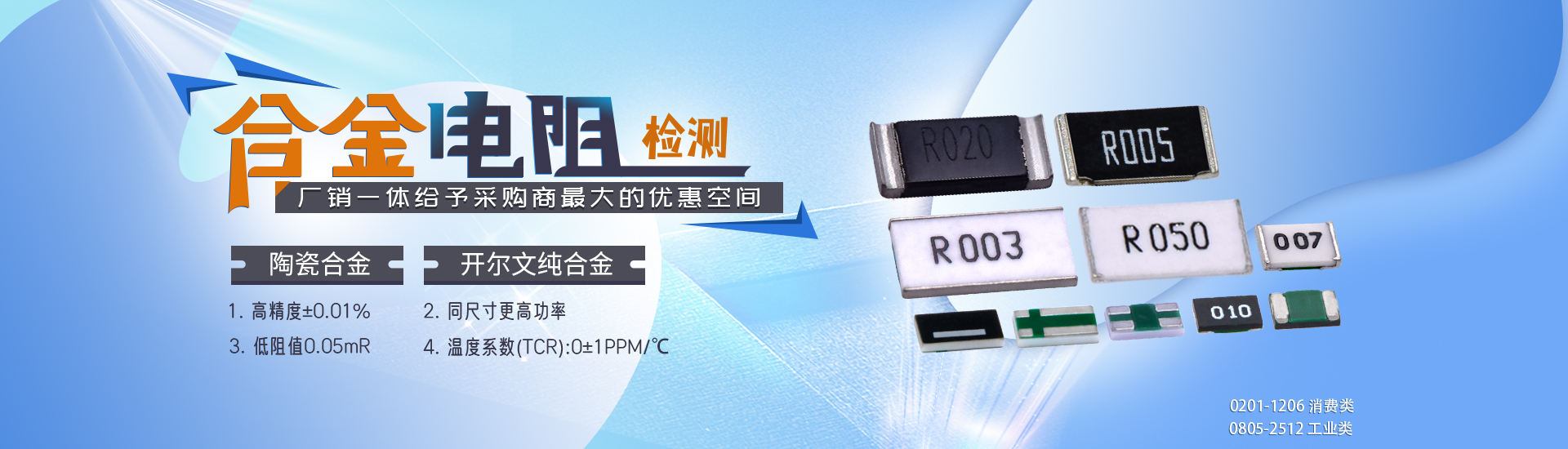 采樣電阻是電子產品中一定要用到的電阻,主要阻值是集中在1R以下,對電路中的電流進行電流檢測用,但是很多產品需要用到高功率,超低阻值,高精度等等。